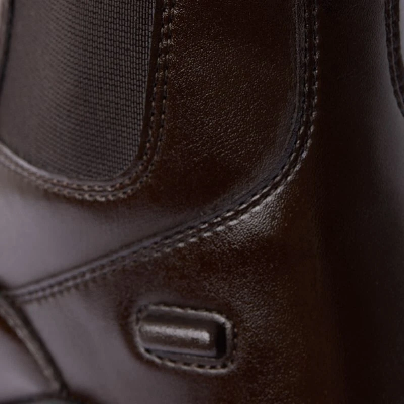 Elastic laces for a more fitted look are combined with two front zippers and a pull strap at the back for easy on and off. Elastic inserts on both sides of the ankle increase the wearing comfort. The soft vegan leather is easy to clean and durable. The Kingston jodhpurs feature a spur rest to keep spurs in place when needed. The timeless design is topped off by elegant stitching patterns and a small logo detail.