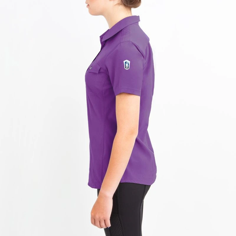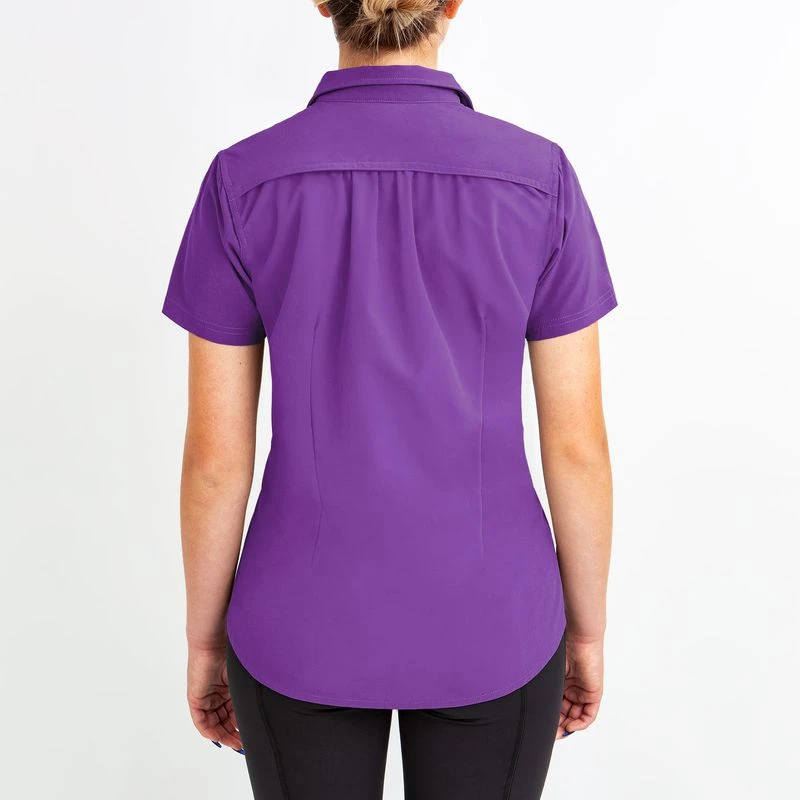 This lightweight short sleeve shirt is made of 4 way stretch fabric paired with IceMesh. It is breathable, moisture wicking, smooth and cool to the touch. The back darts add shape with out being too fitted.