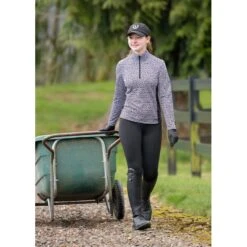 This technical show top features textured Ice Fil Diamond Tech fabric that cools, covers, and stretches. Back mesh panel ventilates and UPF+30 protects riders in the sun. The sleek, feminine fit flatters and performs beautifully beneath a show coat. Kerrits Lucky Diamond pattern inside the snap collar adds a hint of color to this elegant summer showing essential.