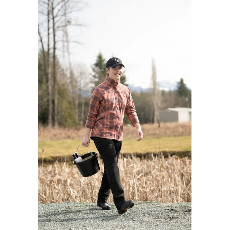 The full-length, front snap placket is versatile for layering, with a shirt tail hem and ventilating back panel for extra comfort. Updated with zip hip pocket. Hides dirt if youre heading beyond the barn.