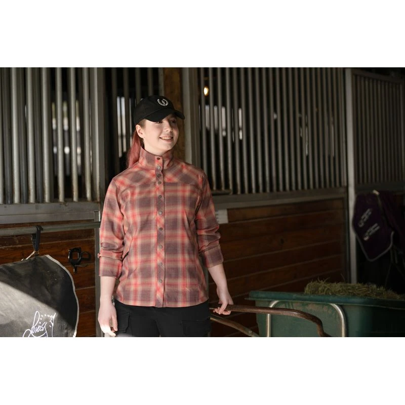 This lightweight shirt stretches, breathes, you can snap up the collar to keep the hay out!!